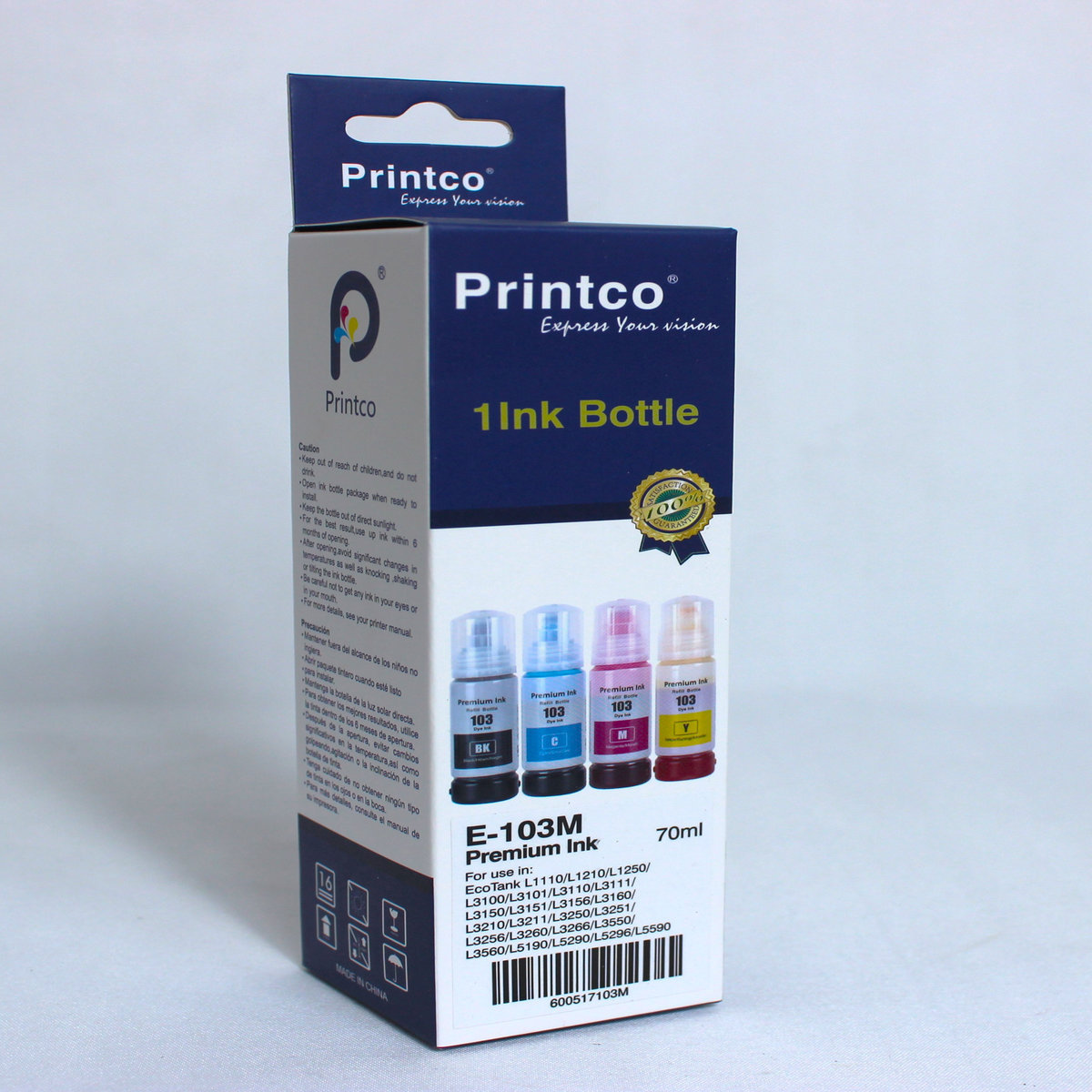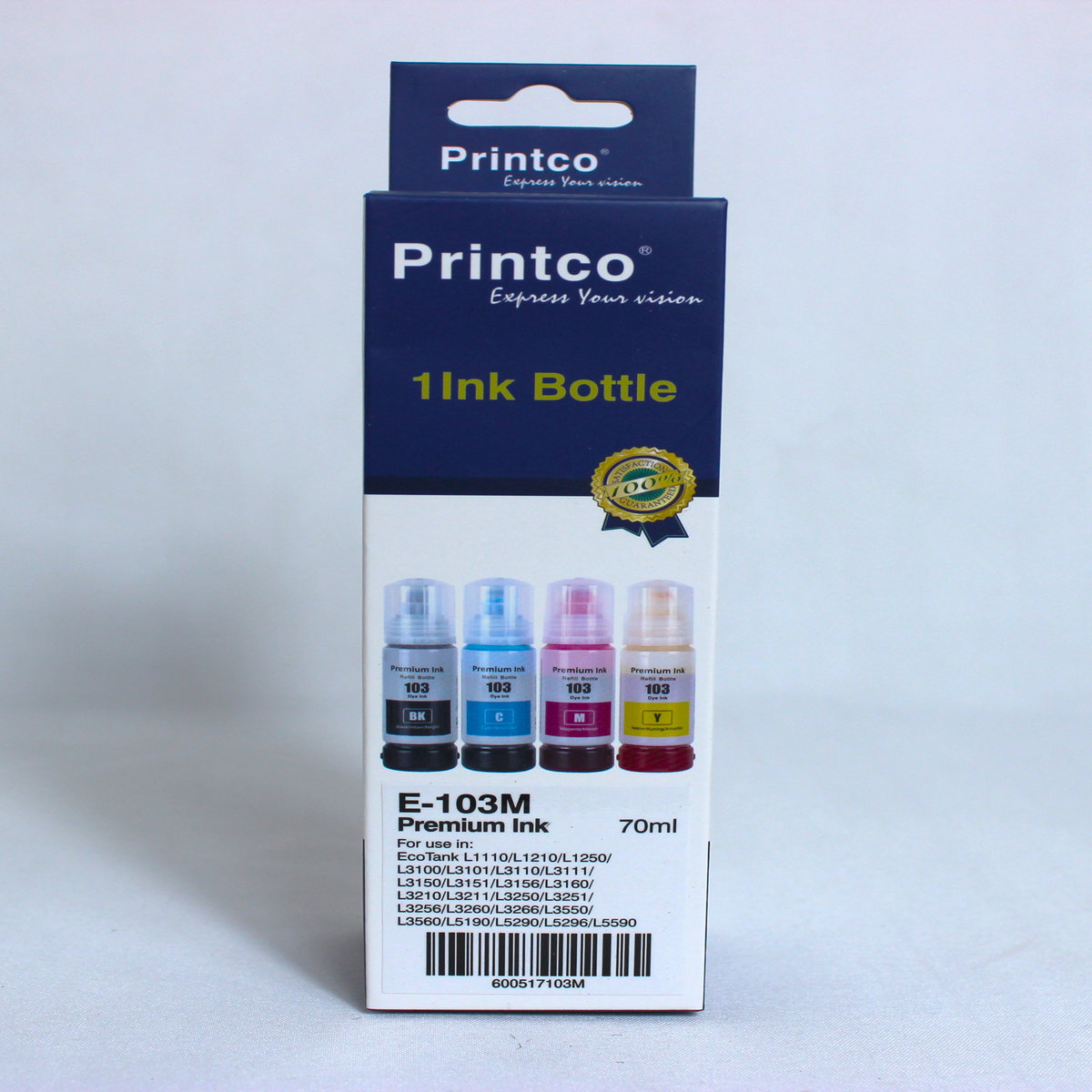 PRINTCO E-103 Cyan Ink Bottle – Compatible with Epson EcoTank L3110, L3111 Printer